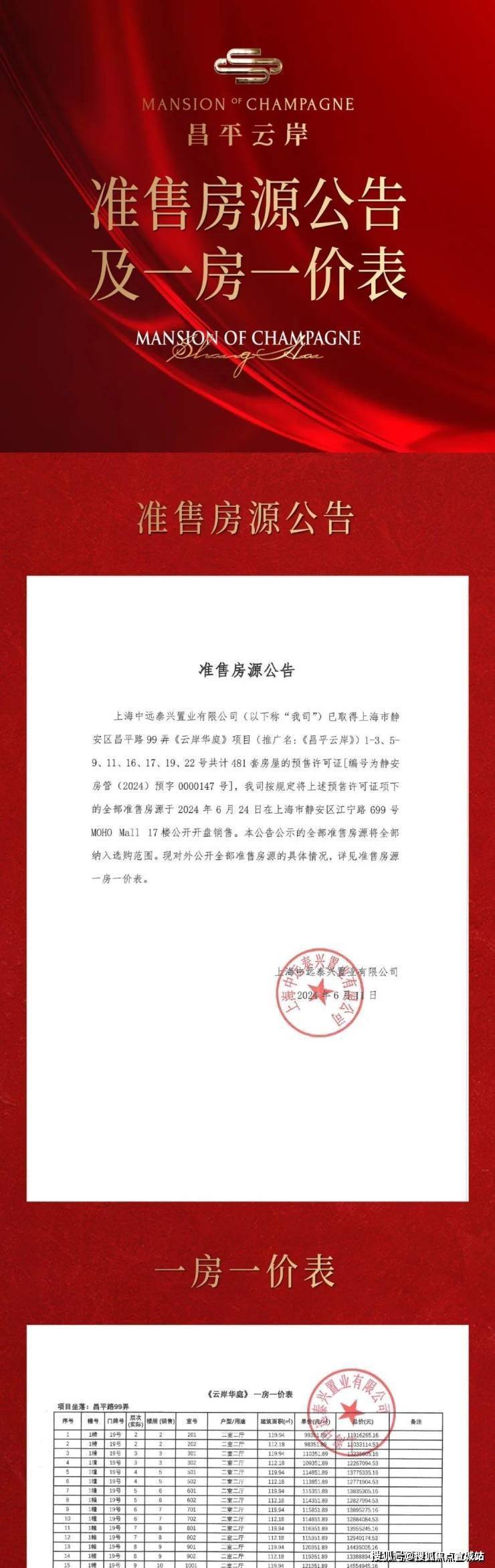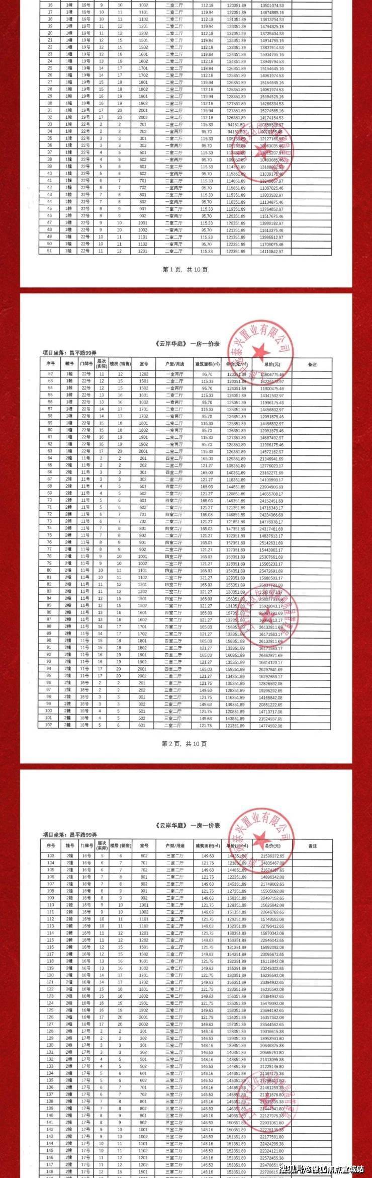 一房一价表如下