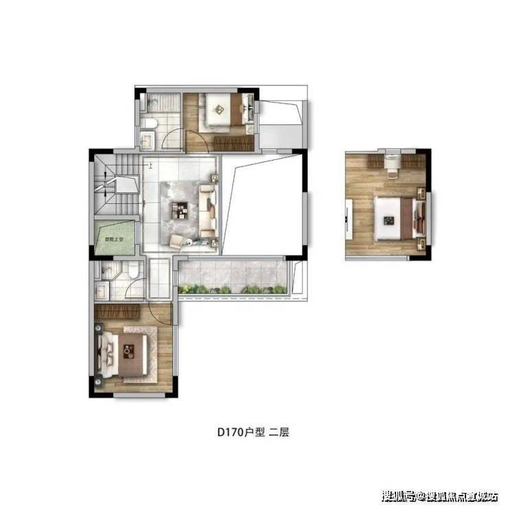 3、最让人着迷的是,他几乎做到了“全系阳光卧房”,除了170㎡户型二层有一间北侧卧室,其他户型所有的房间全部是朝南的阳光卧室。