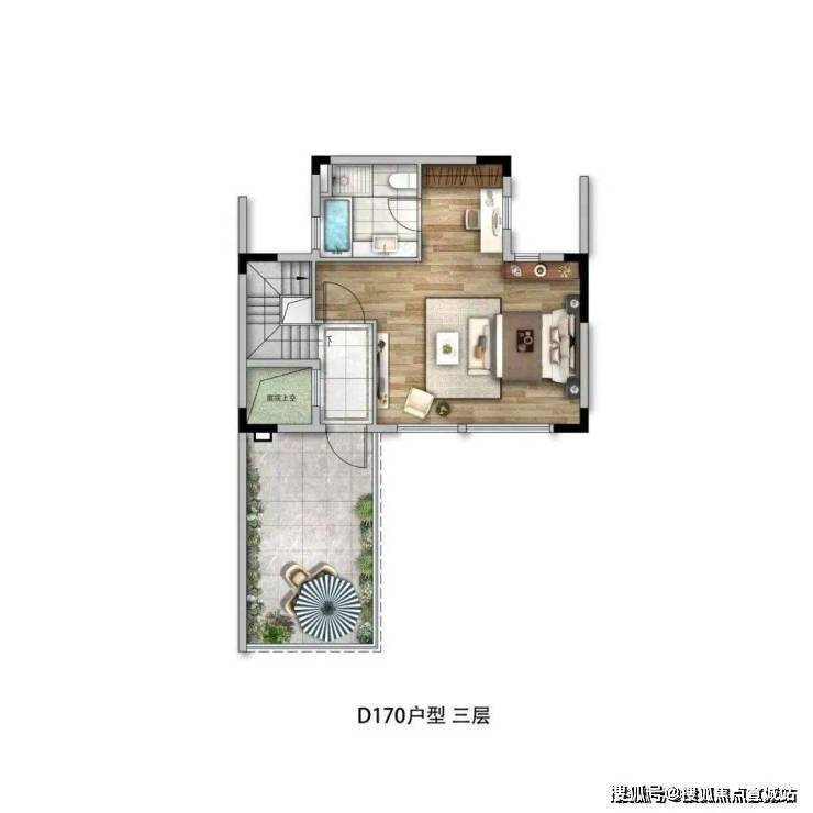 4、还有不得不说的顶层露台空间,星空露台作为现下最受人们追捧的休闲、消遣场所之一,与生活中不同的角色息息相关,赏花品茶,阅览天地宽境,深夜枕星月入眠,别有一番风味。