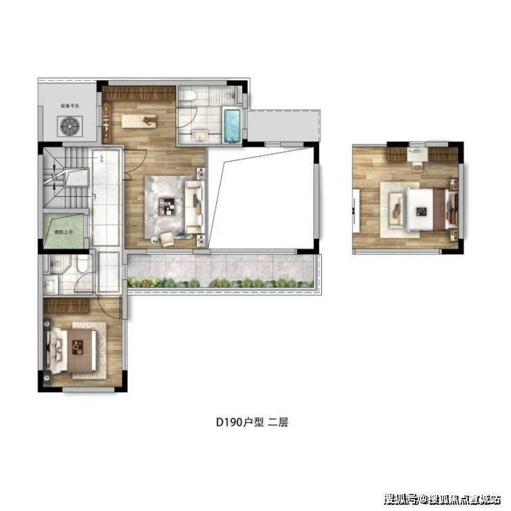 2、其次,每套院墅都自带南北双庭院。且还是人见人爱的超尺花园,最大面积更超300㎡。