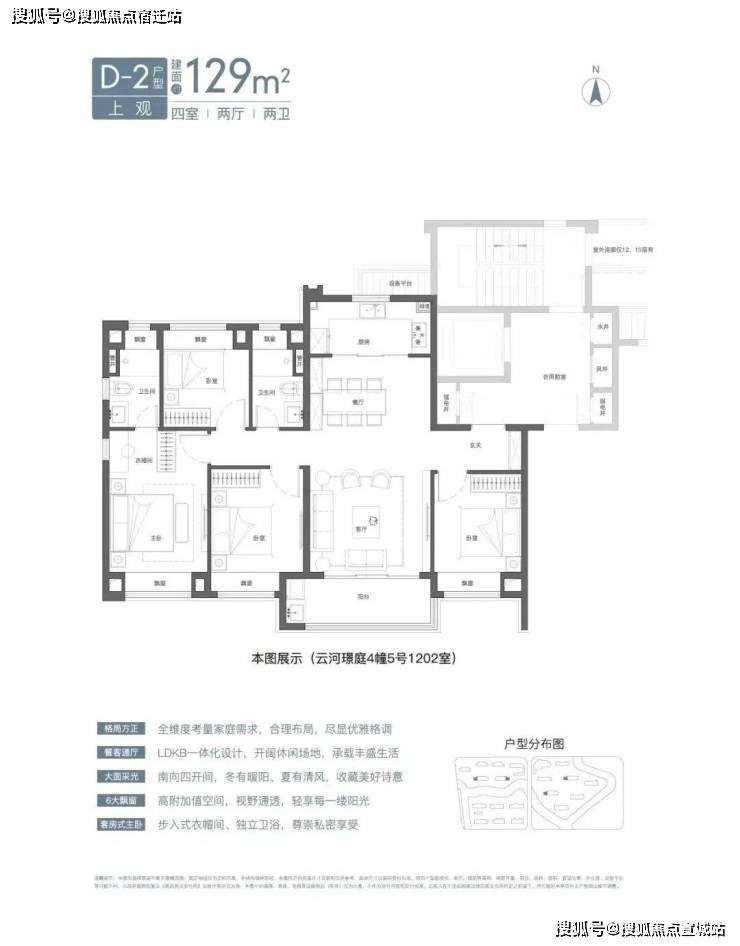预算充足的小伙伴可以入手建面约129㎡4房2卫。