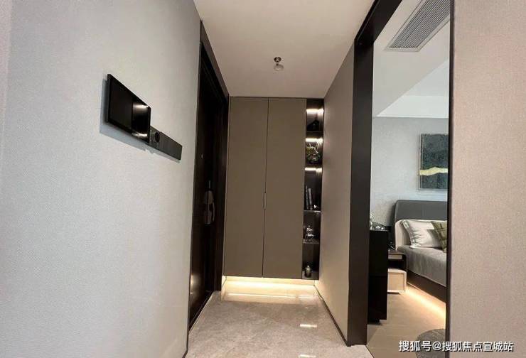 对地下车库的入户大堂同样进行了细致考量,采用雅奢香槟金与米白色建材塑造质感,星空顶和墙面低饱和色调共同组成精致场景,成为业主转换归家情绪的过渡空间。