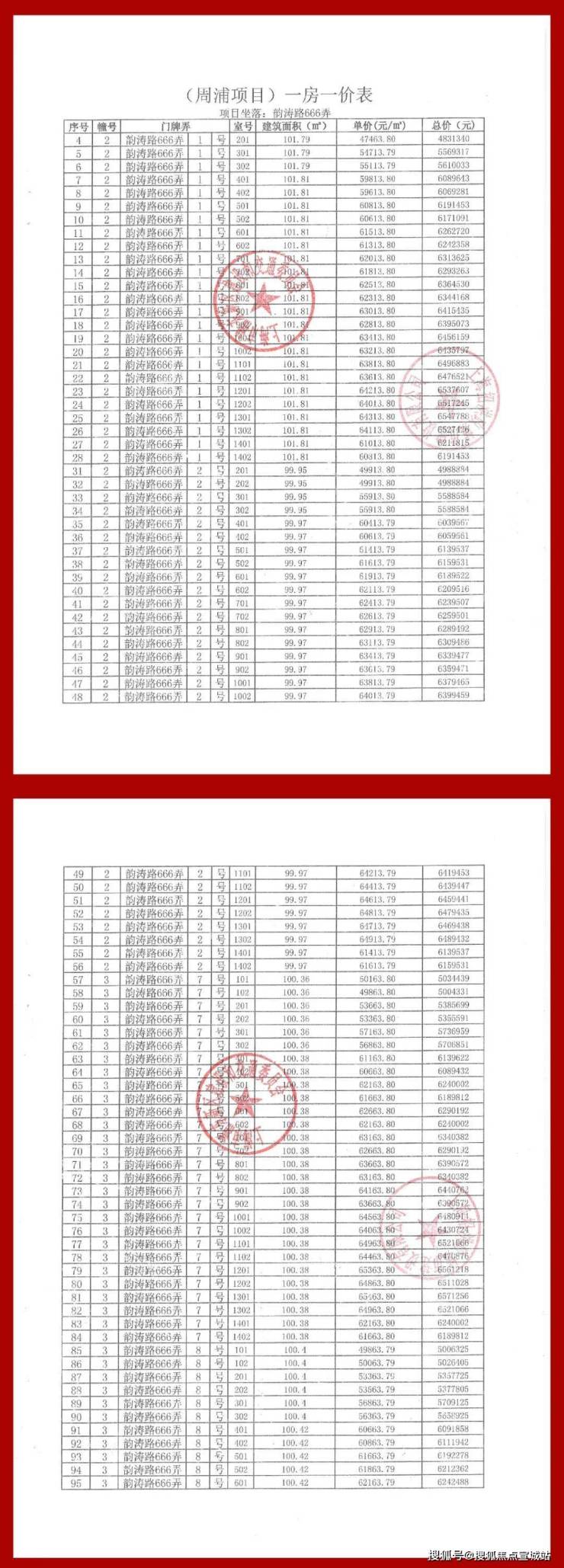 准售房源公告&一房一价表