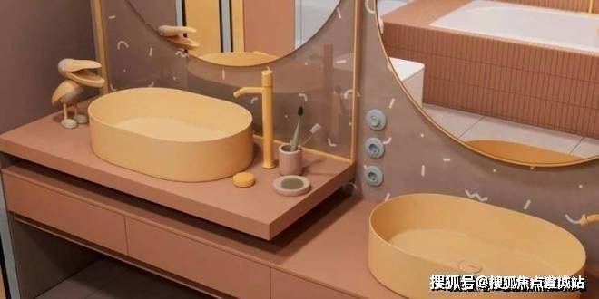 卫生间五光十色,彰显了儿童个性的欢跃、嬉闹,坐凳、摆件、开关,都极具儿时乐趣,让人尽情享受童年的快乐。