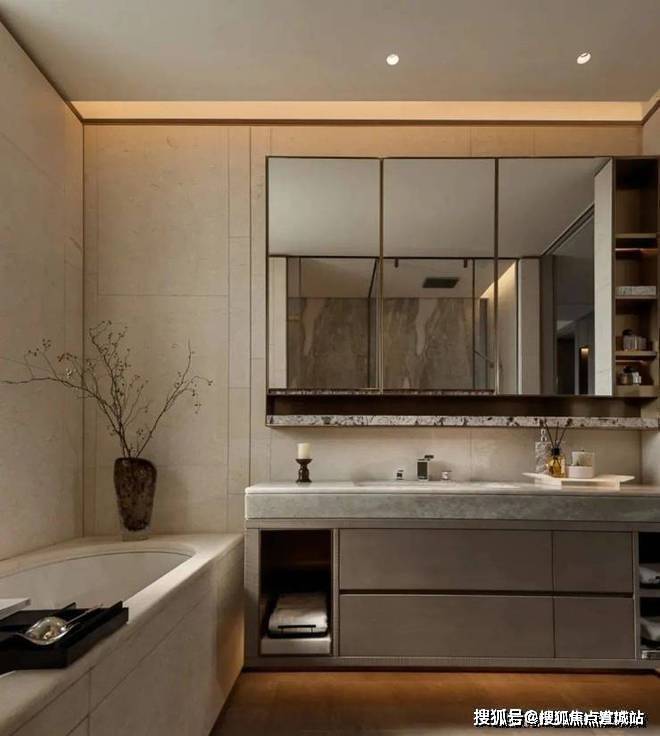 卫生间宽敞而明亮,摈弃过多的射灯或主灯,而是沿用部分照明灯具,立面的装饰线条参差不齐却独有韵味,深色大理石柜体压低了空间的调性,让空间的层次轻重分明。绿宝园翡梵售楼处营销中心:400-8618-004绿宝园翡梵售楼处电话/地址☎:400-8618-004(开发商热线)
