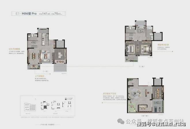 叠加141㎡户型图:(四室两厅四卫)中上叠没有地下室,下叠141+75平(地下室)