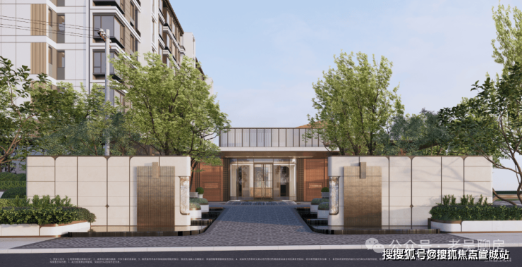 项目的立面设计采用了精选定制红墙砖元素穿插,腰线运用深古铜色铝板,洋房顶层复杂檐口设计等多项匠心细节打造出高质社区。