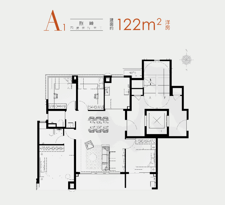 以建面约122㎡4房为例,精装交付,南北通透格局,3+1飞机户型,不失功能性的同时让总价更为友好。