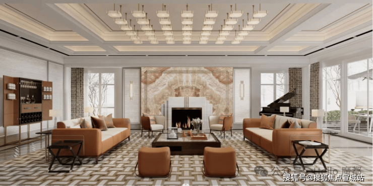 外立面采用北京宝格丽酒店同款天然黄金麻石材干挂,融合文艺复兴、巴洛克与新古典主义风格,孟莎式屋顶搭配手工雕花铜艺,古堡级尊贵质感拉满。入户门厅挑高 8.3 米,12 米超大横厅可容纳 20 人圆桌宴会,270° 全景飘窗引景入室,私家庭院 + 双车库配置,部分户型自带私家泳池,仪式感与实用性兼具。