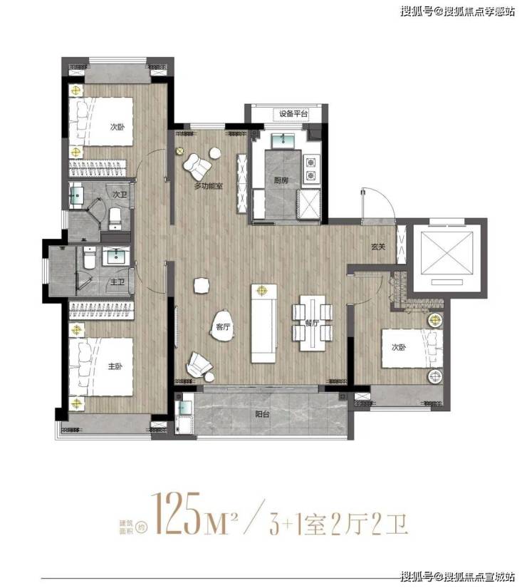 建面约125㎡3+1房对于改善客户而言,一步到位。