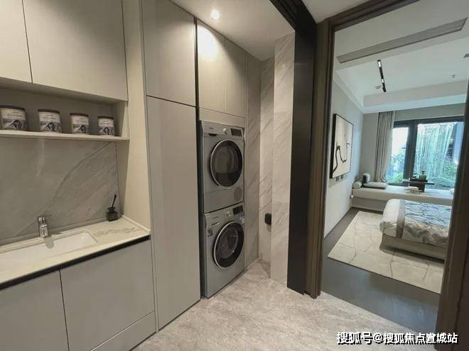 考虑到建筑外立面的公共化设计,该户型并未设置晾晒衣物的后勤阳台,但项目贴心地为这款户型配备了独立的后勤空间,既可以满足日常晾晒需求,也便于非住家保姆的临时使用,细节之处尽显周到.