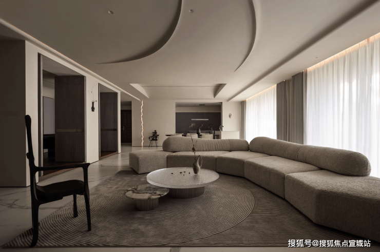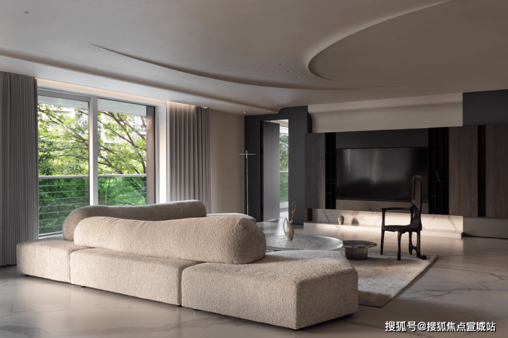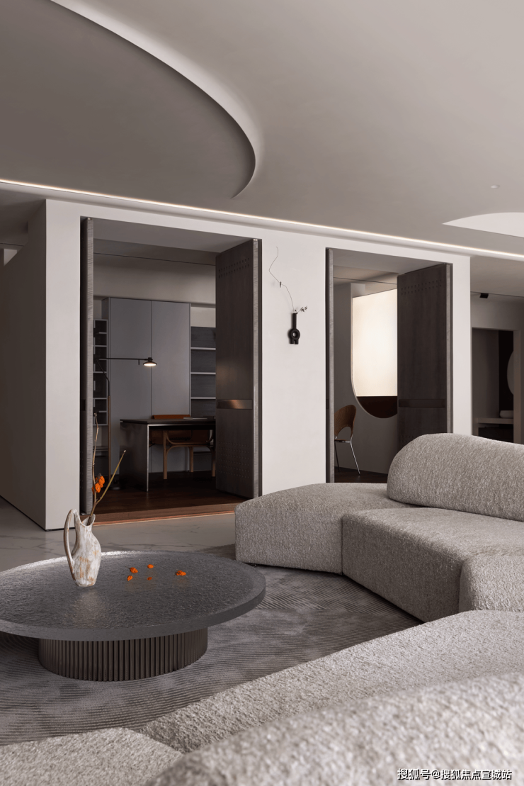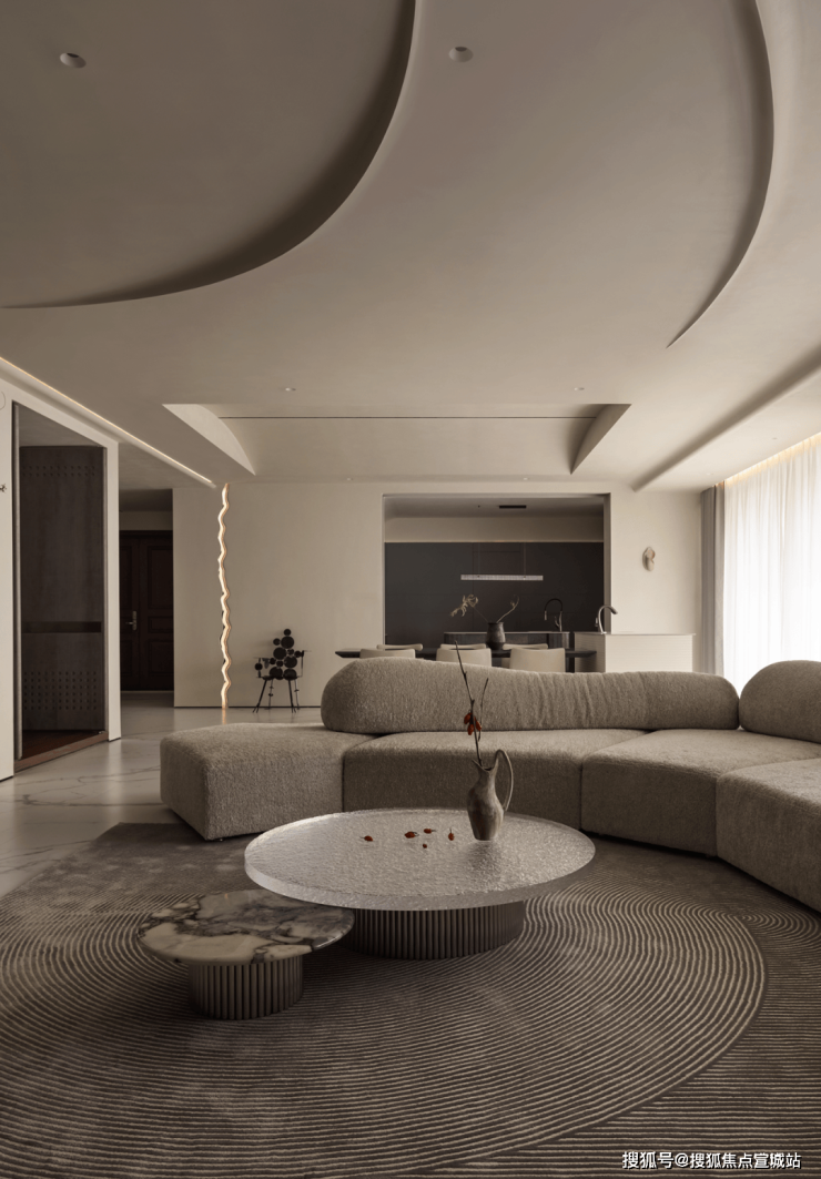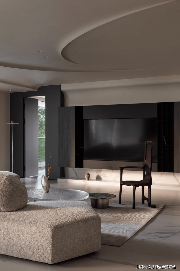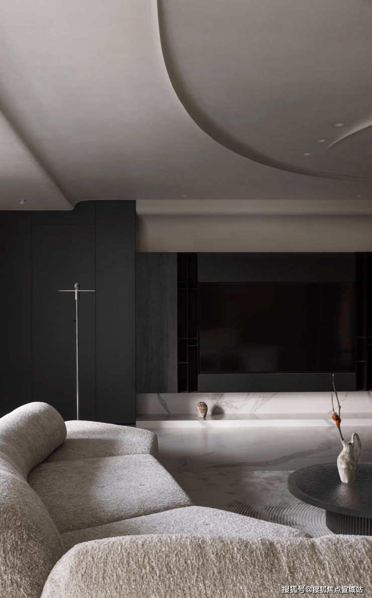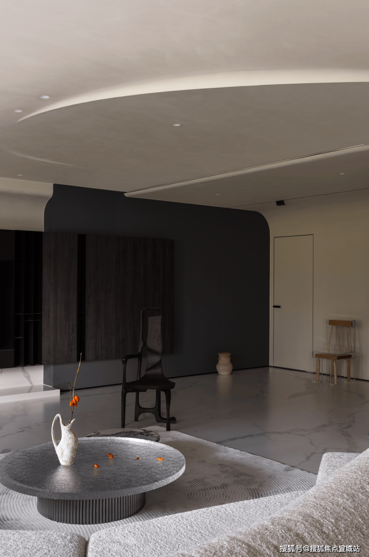 高级黑的纯粹静谧,营造出沉稳且个性的现代质感,松软的布艺家具、粗粝的陶器、永生的植物等简素物体,共同点缀着室内空间,创造出一种可感知、充满包容性的场域.