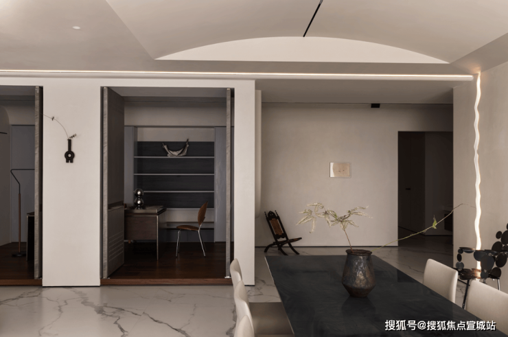 由外步入室内的连接点,是归家的第一仪式感,仪式的意义在于身,更达于心.简约纯净的意境让一日奔波的主人进入房门的一霎那就能卸下心灵的重担,得到放松,静心地享受家的美好与治愈.