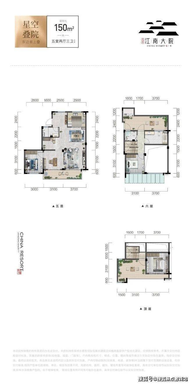 三叠排:建面约150㎡ (五室两厅三卫)