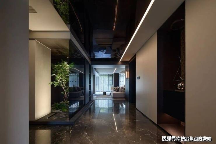 设计师采用【爱力蒙特∙黑金帝国石】地面通铺,独特的浓郁黑色底色,自带无尽视野纹理舞动地闯入,多元文化沉淀的石材,在灯光的映衬下,赋予空间奢雅而高级的气息.推动人与场域建立共鸣与自洽的美好连接.