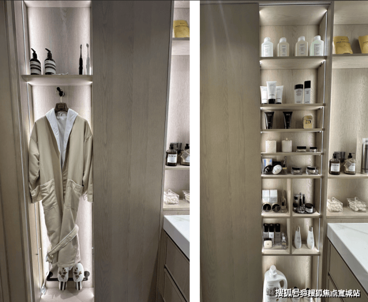 可以看到,中海不止是给业主提供了一个收纳空间而已,而是根据业主不同的摆放收纳需求,在窄柜中做了大小不一的隔断,以便满足不同的收纳需求,这就是在设计阶段,将业主的生活需求前置,并充分考虑到了解决这些需求的答案.