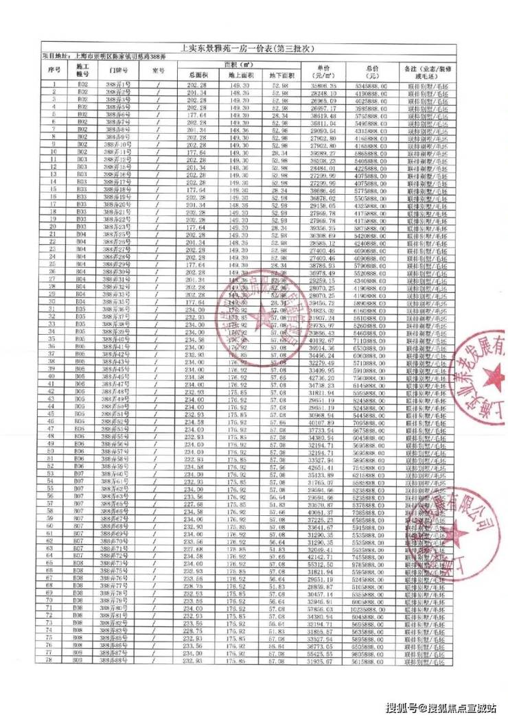 一房一价表及销售公告