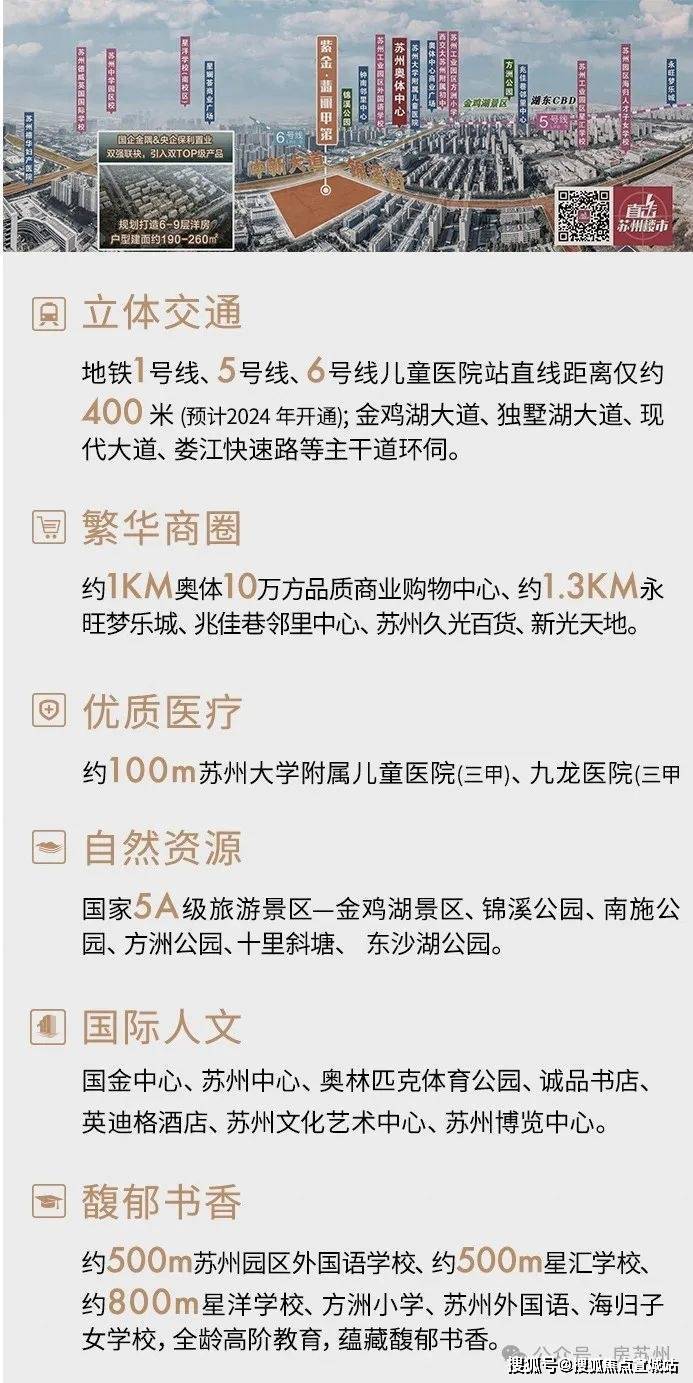 苏州紫金·翡丽甲第官方售楼处电话/地址:400-877-8334(官方预约看房热线)✦紫金·翡丽甲第售楼处官方营销中心热线400-8778_334【开发商官网已认证√√】最新动态配套卖点:苏州紫金·翡丽甲第位于工业园区锦溪街88号,在售面积190-275㎡,均价约63595元/㎡,楼层总高6-9层。交通配套地铁6号线中心大道东站约550米,区位买点金鸡湖东核心低密洋房;