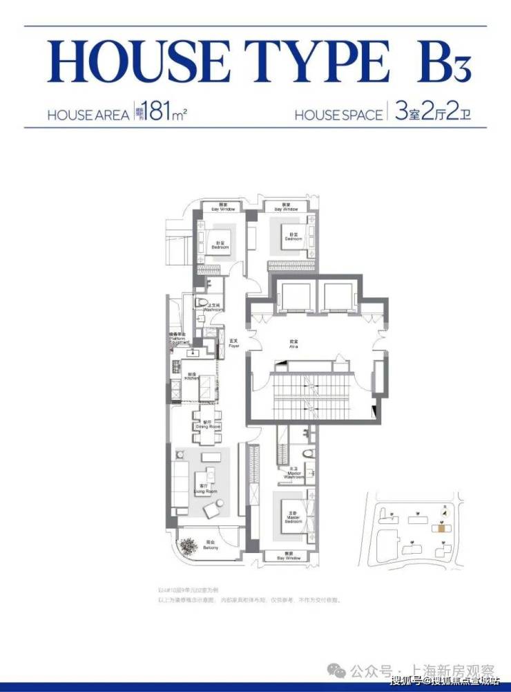 外立面方面,项目整体将打造为新海派建筑地标,设计有弧线阳台、45度玻璃、双层塔冠等,设计灵感来源于蔓楼兰;立面色调方面,将采用珐琅彩色调,具体或为珍珠蓝铝板+红色纹理+金色线条,具体材料及配色还在最终确认。