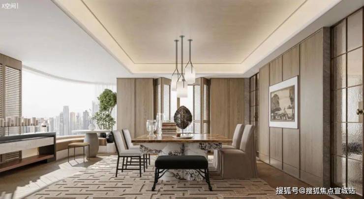 豪宅中,会所+泳池已经成为市场标配。但是万科中興傲舍,真正做到了“把艺术作为生活的一部分”。植物园泳池放在了2楼,选用了皮革面的绿色石材,营造一种树影斑驳的感觉。里面的绿植不是装饰,都是鲜活的、精心照养的。