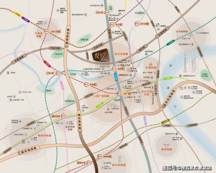 商业配套完善 :2 公里内有静安大悦城、苏河湾万象天地等人气商圈,满足购物、娱乐、休闲等一站式需求。还有宝格丽酒店、Ferrari 亚太定制中心等高端消费场所环绕。楼盘周边 3km 范围内更有 127 个商场,商业氛围浓厚,日常购物极为便利。