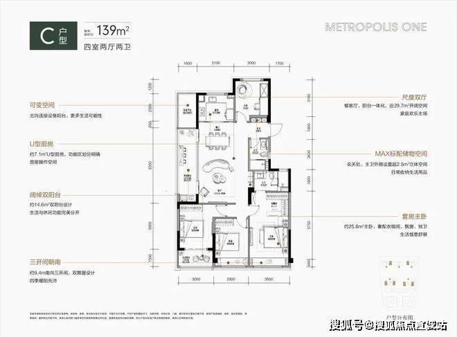 ③双套房格局,主卧高达27.5㎡