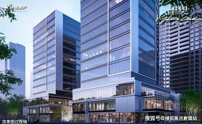 外立面采用三面铝板+大面积玻璃,顶部设计“悬浮云端”格栅塔冠。