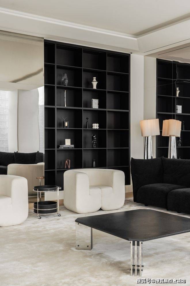 奶油白的基底,搭配黑色的书架,黑白组合的经典理念下,色彩反差效果让空间更加静谧。空间的层次,沉稳优雅的气质,都是黑白组合带来的艺术力量。