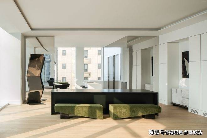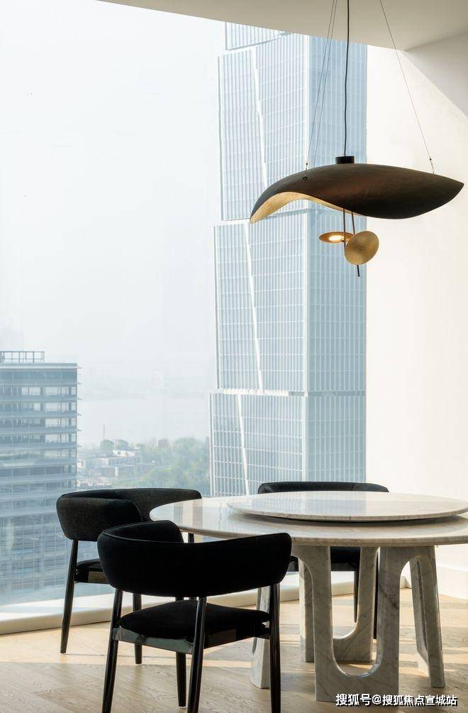 从材质方面,空间装饰十分丰富,留白和黑色的典雅作为核心,加入不同的金属、皮革和布艺,空间更加圆满,生活也随之更包容。