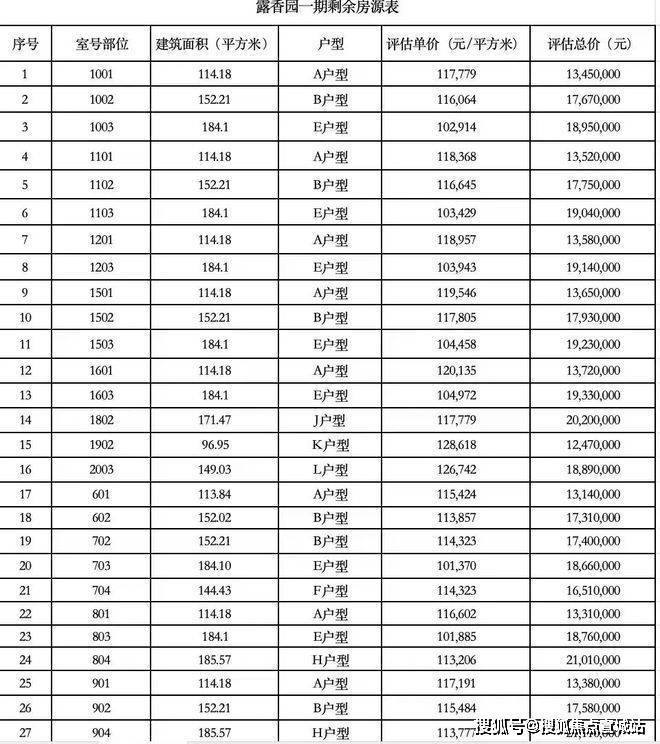 最新一房一价表: