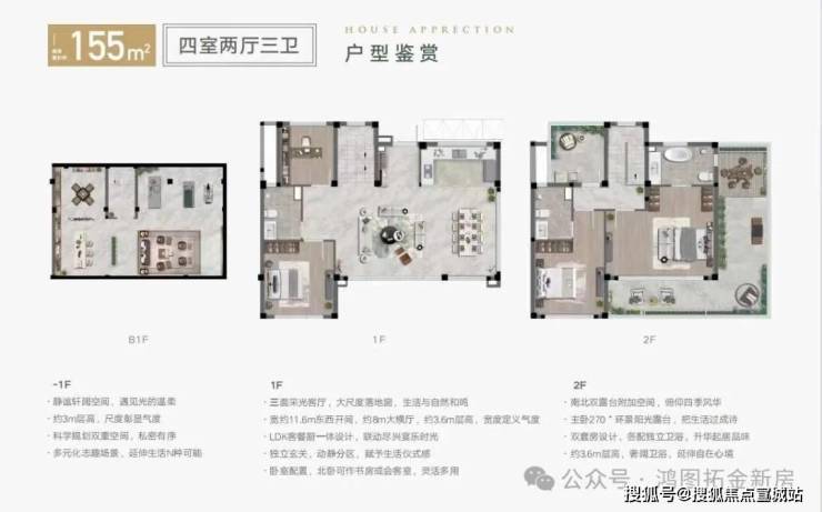 主力户型为98-172㎡合院,地上两层+地下一层设计,层高3.6米。每户赠送地下室(约74㎡)、露台(约26㎡)及闷顶空间(约20㎡),实际使用面积翻倍。