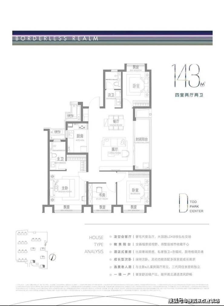 143㎡四房:总价965万起,一梯两户,四开间朝南