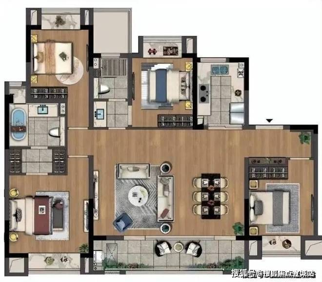 140㎡户型(4室2卫)特点: