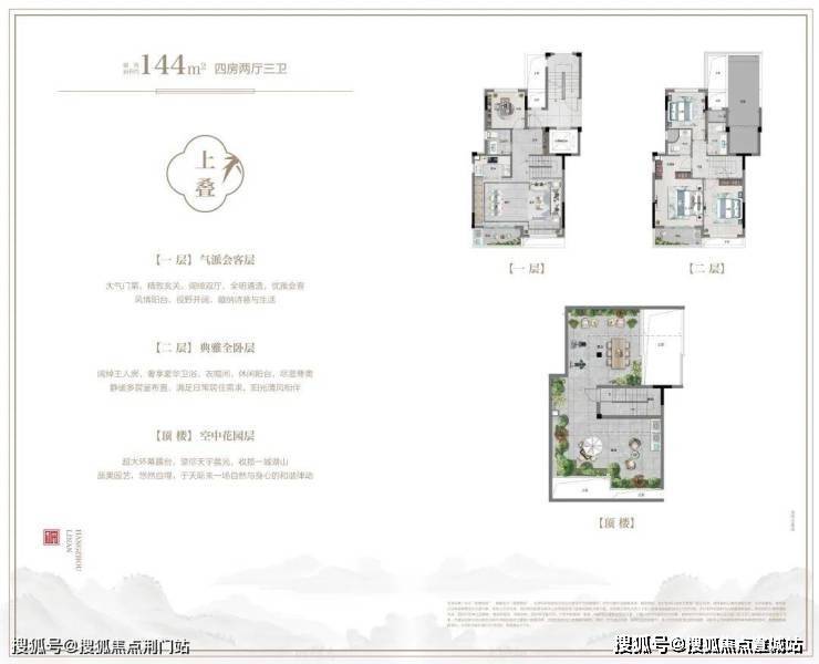 建筑面积约144㎡伴山叠院,尽情享受双层生活的惬意与高贵,专为置换改善人群量身定制,上下分层空间分离,动静分区动线合理,实现生活场景分离,家里有老人也可分层居住,互不干扰,优享舒居生活.