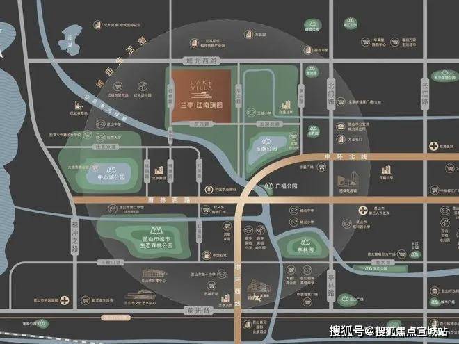 中心湖公园、昆山森林公园、玉湖公园等生态绿境在侧,氧护生活;