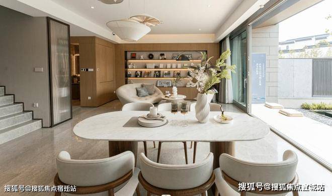 "每一栋别墅,都是对阳光的极致追求。双开间朝南设计,南向总面宽约7.5-8米,让温暖与光明成为家的常客。以约186㎡的边套为例,一楼的开敞式餐客大横厅,搭配270°环形景观视野,开间约8米,仿佛是大自然亲手绘制的画卷,每一寸空间都流淌着自然的韵律。