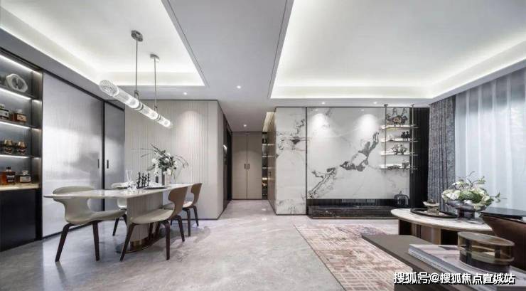 张江金茂府3.0户型得房率接近80%,其阔绰度在同价位段产品中也堪称第一梯队。以客餐厅为中心点的飞机户型,自然延伸到各个房间,没有多余的过道空间,减少空间的浪费。