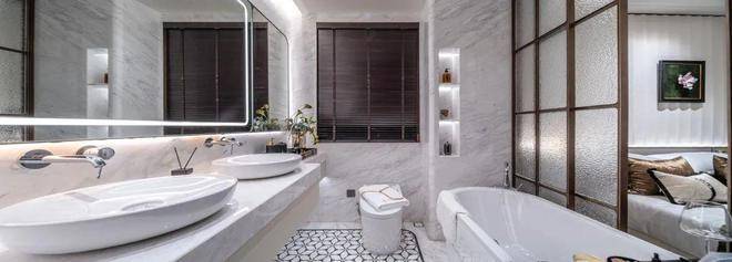 装饰用料方面,无论是凝脂玉石打造的玄关置物区,还是招商臻境专属的皮质与石材相结合的拼接电视背景墙,亦或是厨卫岩板铺装,都在不经意间,透出高端人居的质感品味!
