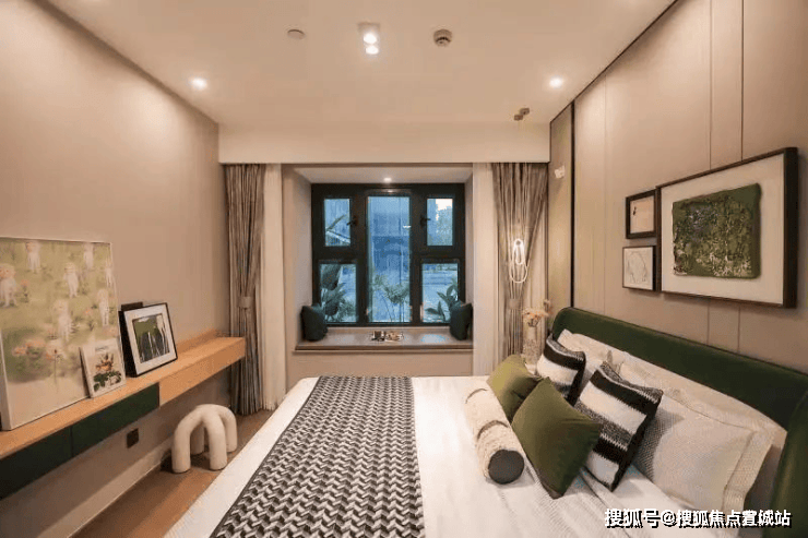 主卧套房宽敞明亮,还有一个尺度足够的步入式衣帽间和一个飘窗,次卧同样有一个大面积的飘窗。