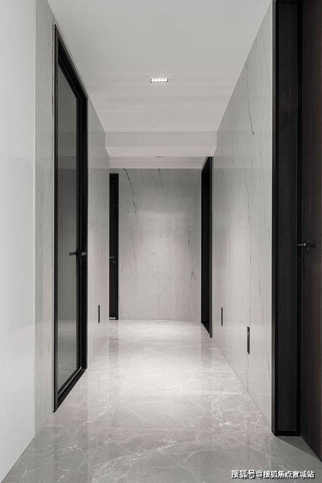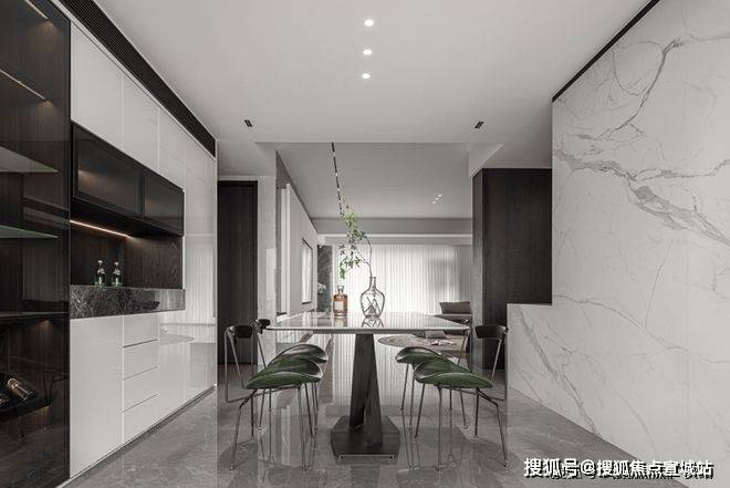 灰白色的整体调性,营造出安静惬意的居家感受。客厅采用爱马仕灰大理石,细腻的石材纹理质感,层层递进,开启视觉延展。