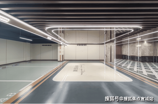 车库公区方面,项目采用贯穿式鱼尾灯坡道和超耐磨地坪,过道全部是精装吊顶,地下管道和局部区域进行二次包裹。