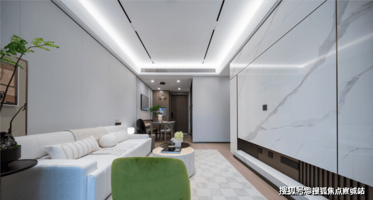不仅标配了中央空调+新风系统,而且还设计了全屋墙布、不锈钢踢脚线、磁吸轨道灯带设计……