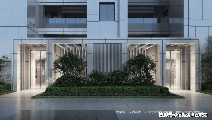提供人行入口,并采用酒店式门头设计,递进的仪式感和层层变化建筑,使居者享受更加优雅的归家仪式感。