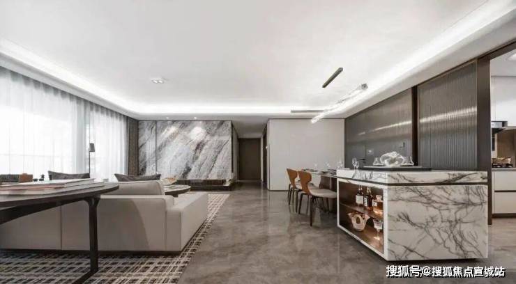 如徐徐展开的姑苏长卷一般,葡萄牙卡斯兰石材的史诗尺度铺陈,米白色肌理晕染出耦园白墙的温润,昼夜交替间演绎刚柔并济的“双面绣哲学”。而门庭的设计融贯“显隐之道”:外立面以金属格栅与石材的虚实碰撞,勾勒出简练而庄重的轮廓;内庭则以层层递进的轴线,营造出“门庭-庭院-厅堂-园景”的四重空间。这一方门庭,不仅是物理空间的过渡,更象征着从城市繁华到私属静谧的尊崇转换,以奢阔尺度致敬苏州千年门第文化。
