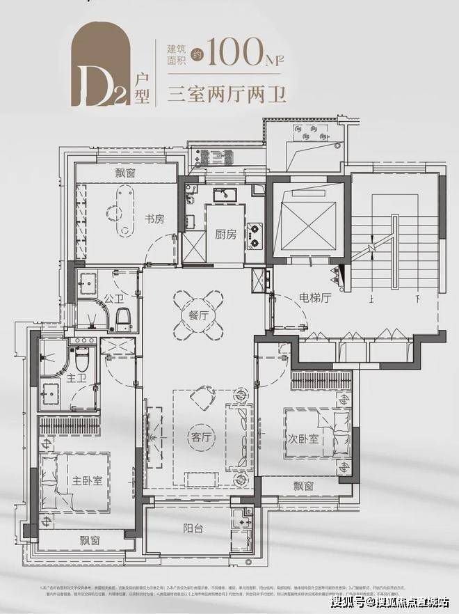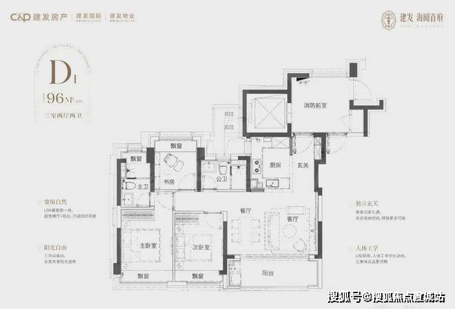 建面约96㎡3房2厅2卫