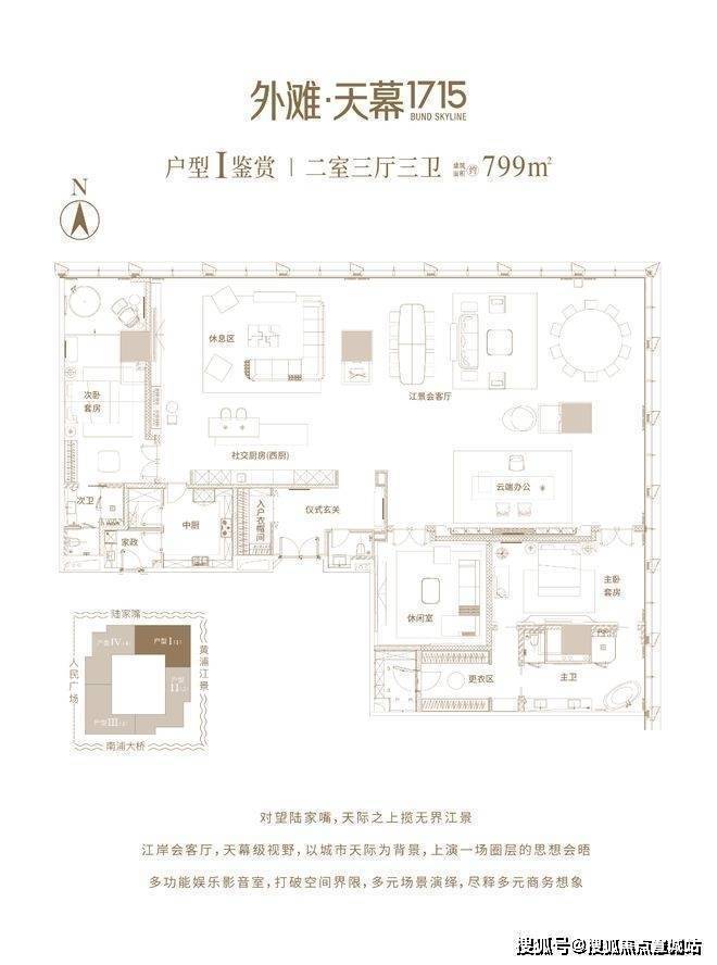 300米外滩顶峰,会晤世界塔尖资本外滩·天幕1715,位于外滩地标绿地外滩中心T1#300m超高层楼栋,标准层高约4.5m,主力户型面积约714-799㎡,