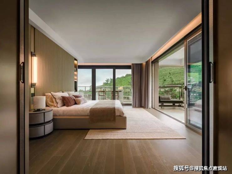 项目展示样板房实景图,很有山水的意境!在自家院中、客厅、露台,甚至是卧室里,就可以看到西湖茶园,躺着看、坐着看、站着看、倚着看、睡着看……yyds!