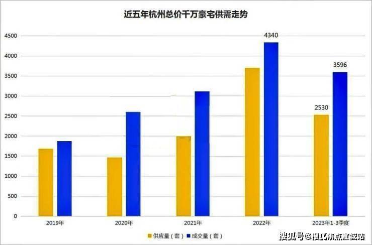 数据显示,从2021年到2023年上半年杭州千万级豪宅成交量走出独立行情,特别是2023年上半年千万级豪宅直接卖爆,成交量更是直接破纪录!