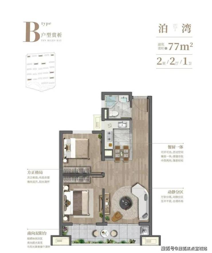 建面约57㎡1房、77㎡2房、100㎡3房