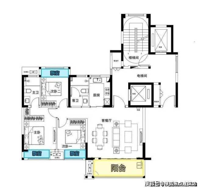 建面约98㎡户型装修参考图